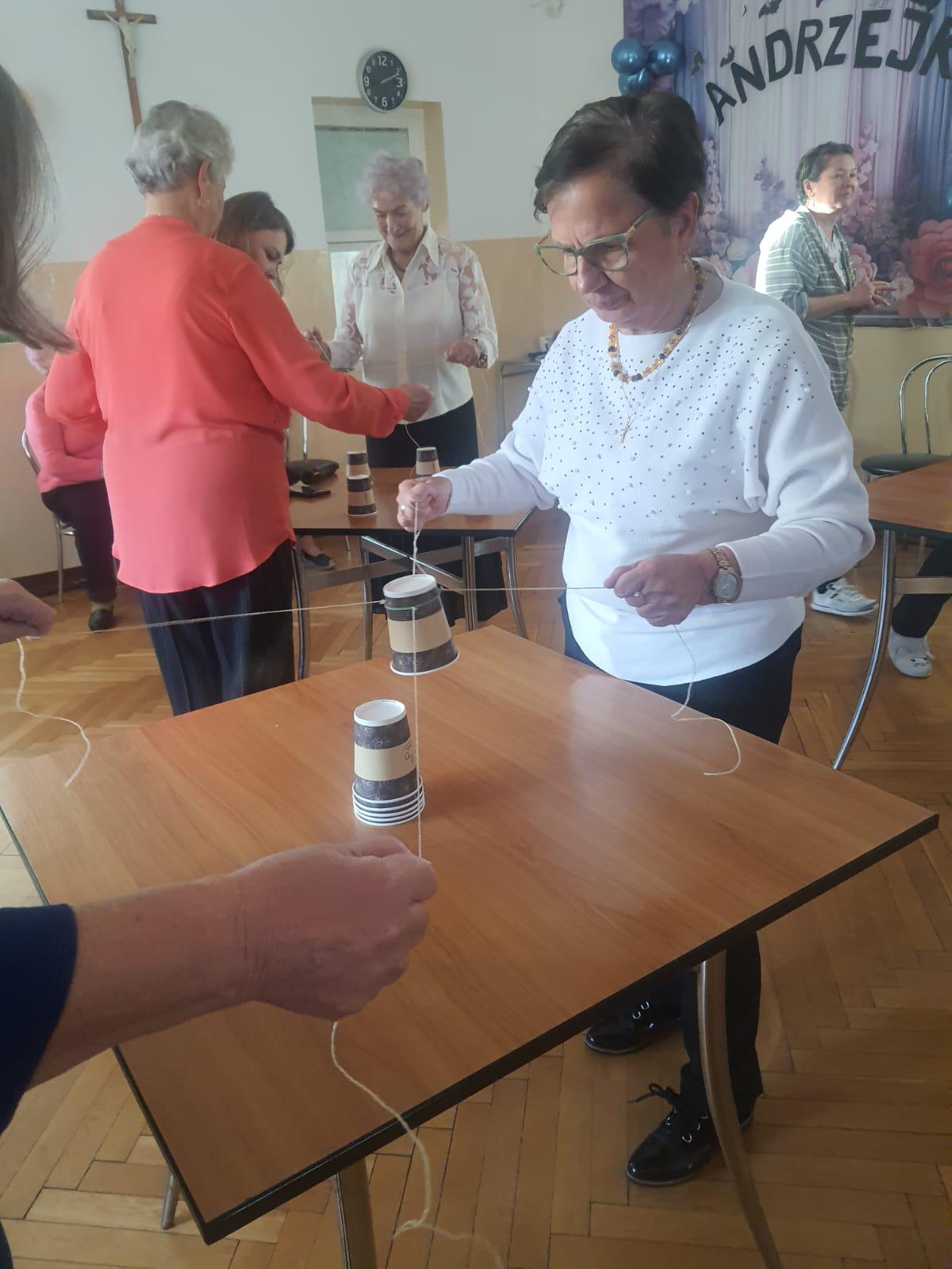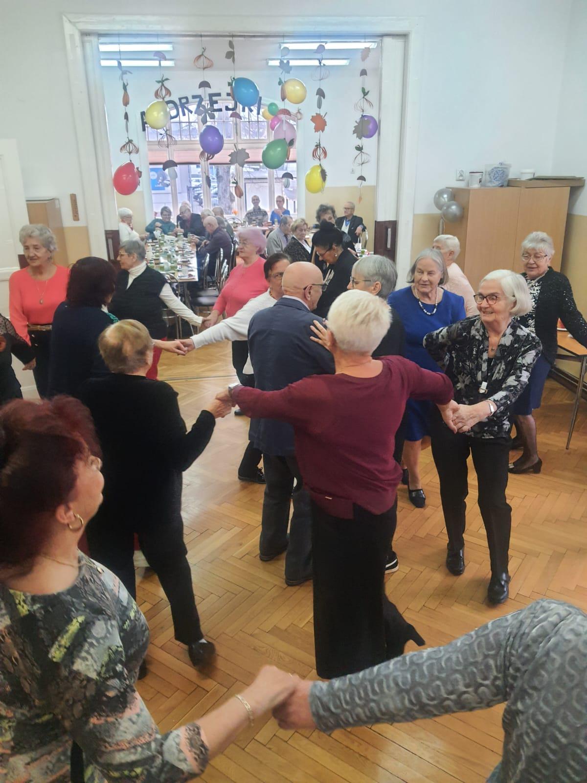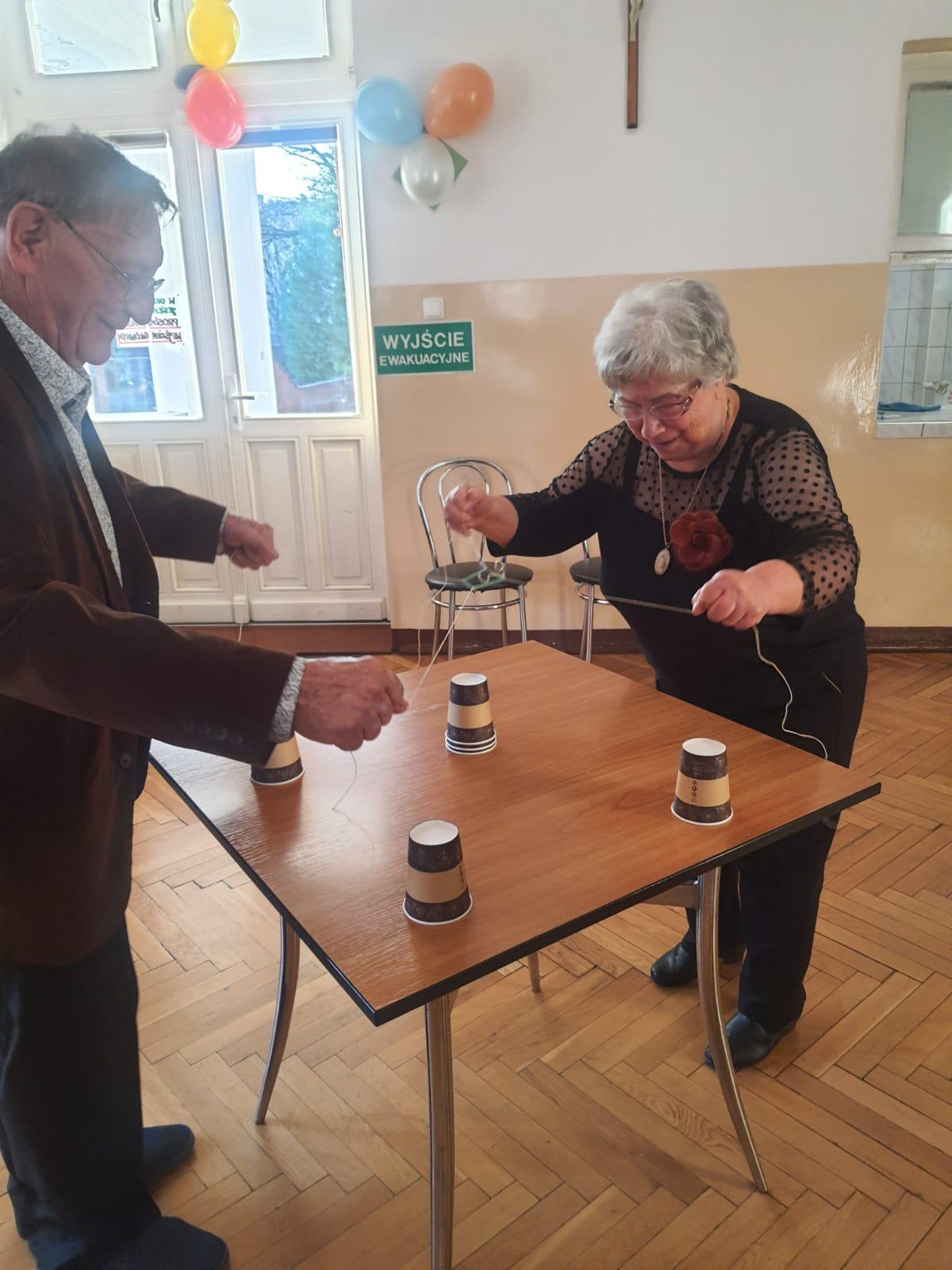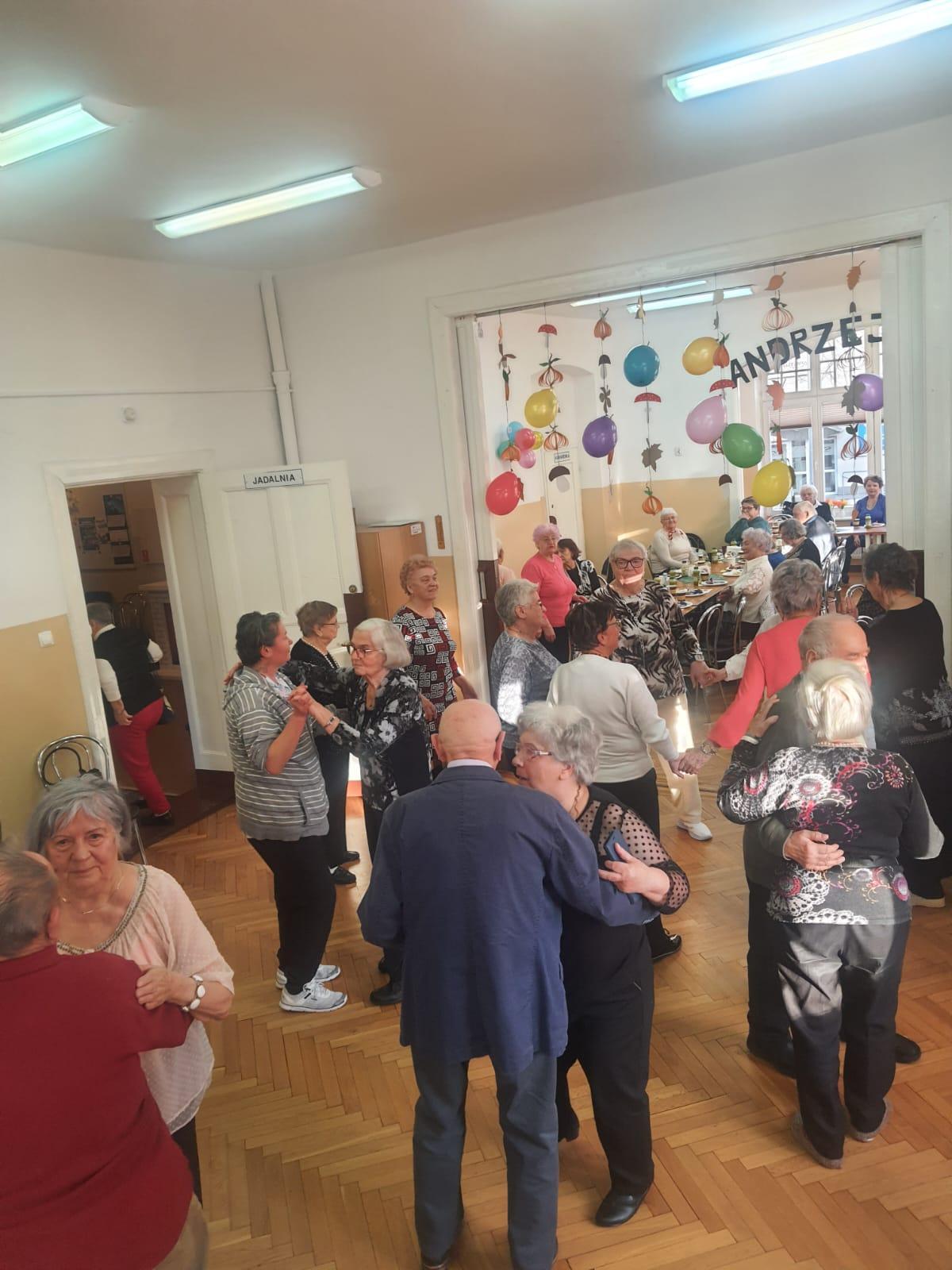 W programie nie zabrakło karteczek z wróżbami, dzięki którym każdy uczestnik mógł dowiedzieć się czegoś interesującego o swojej przyszłości – na przykład, że może nadejść miłość, bogactwo lub… konieczność podlania kwiatków. Dużym zainteresowaniem cieszyły się także zabawy zręcznościowe, w tym obieranie jabłek na najdłuższą skórkę oraz zwijanie gazety nogami, które wywołały wiele emocji i uśmiechów. Uczestnicy mieli również okazję tańczyć przy muzyce, a tradycyjnie po zakończeniu aktywności serwowany był słodki poczęstunek.