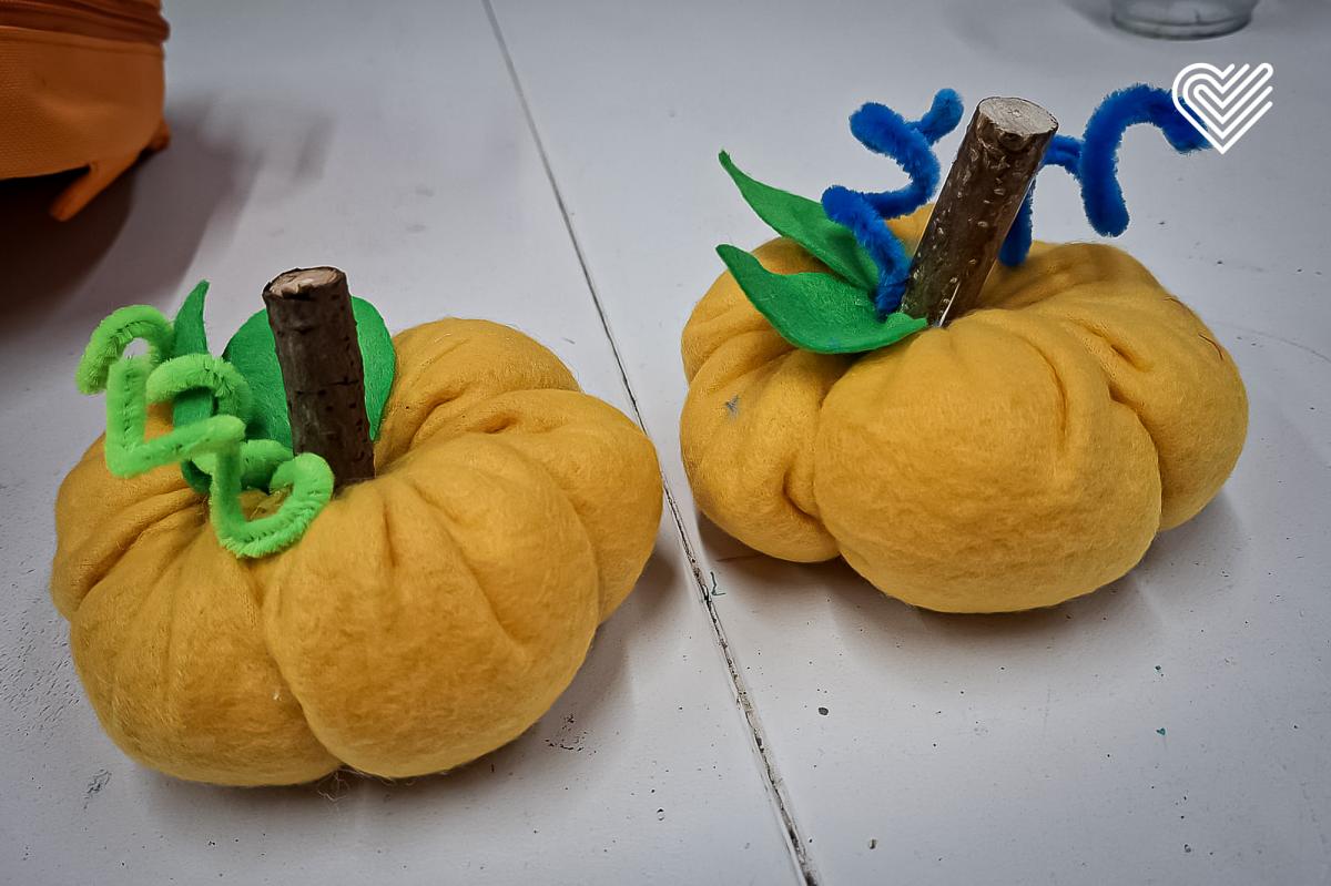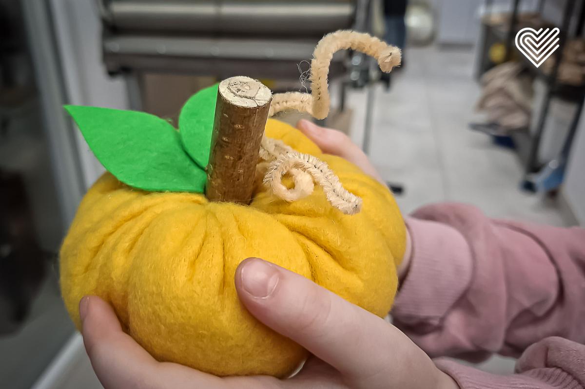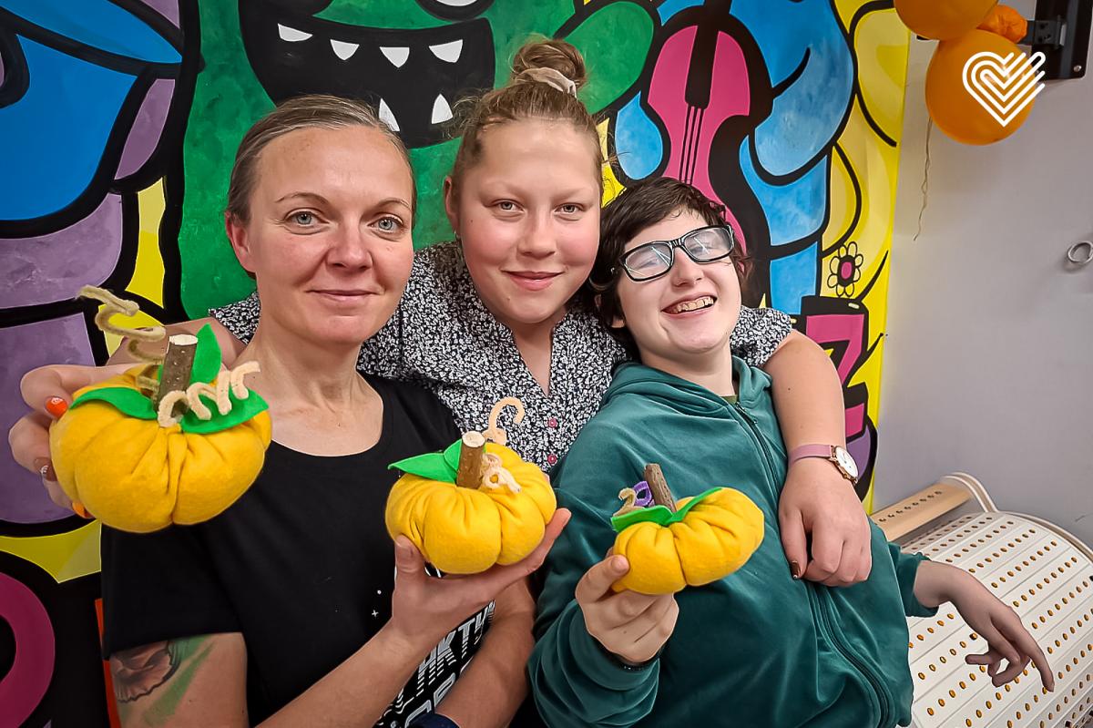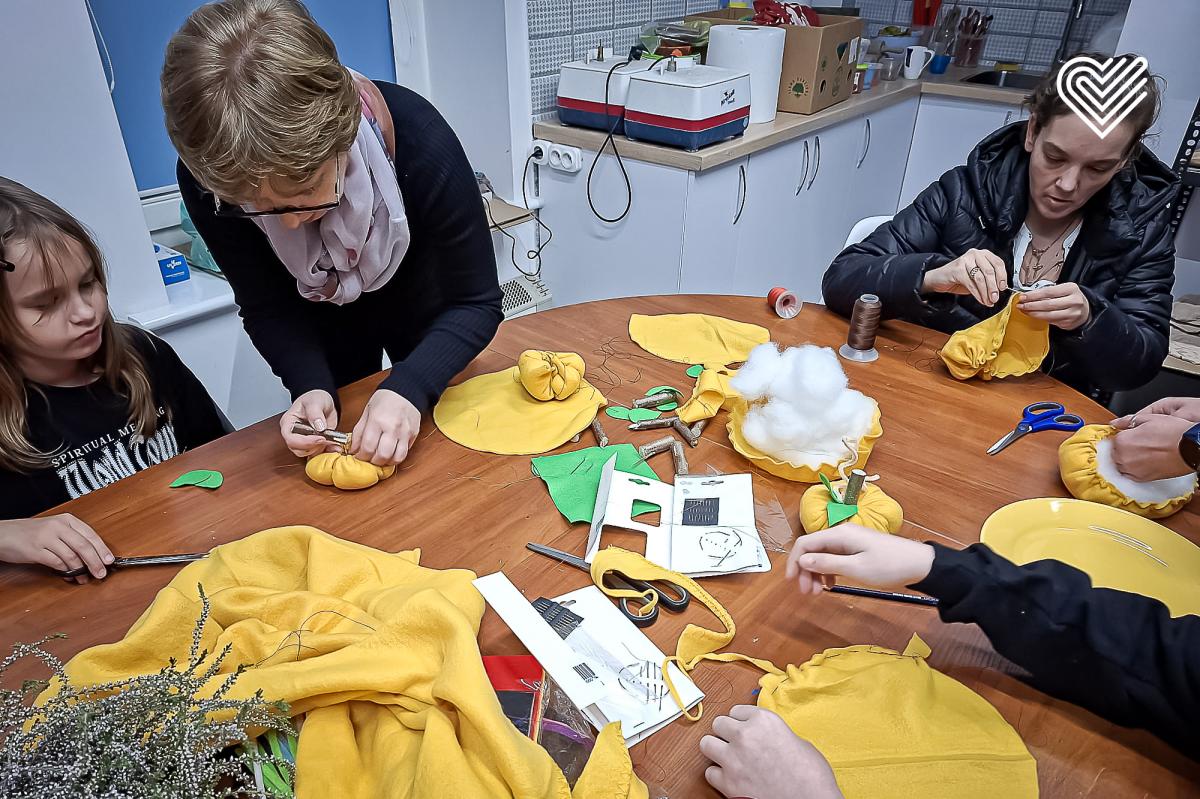 Podczas spotkania uczestnicy – dzieci i dorośli – tworzyli kolorowe jesienne dynie z materiałów plastycznych. Wspólna praca stała się okazją nie tylko do rozwijania kreatywności, lecz także do rozmowy, śmiechu i wspólnego spędzania czasu w ciepłej, rodzinnej atmosferze.