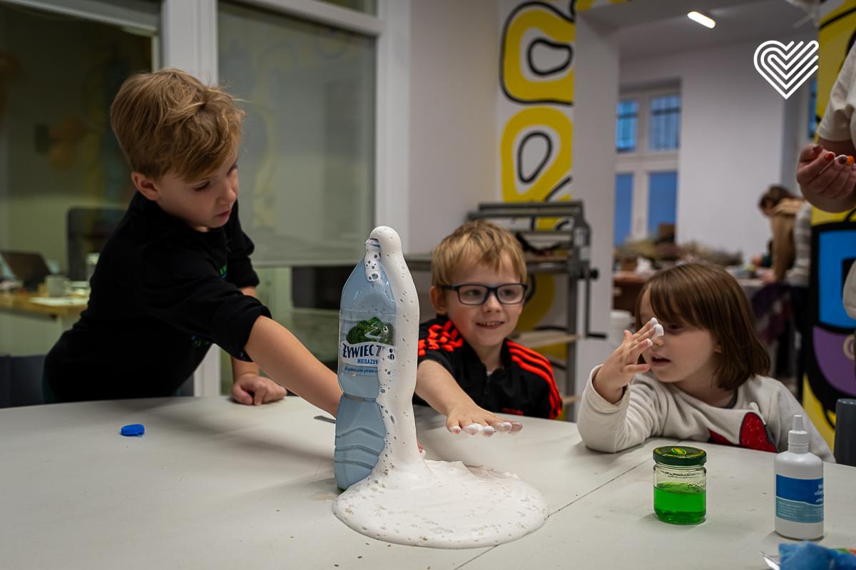 Nie zabrakło też nauki przez zabawę – najmłodsi uczestnicy mieli okazję przeprowadzić ciekawe eksperymenty, które wzbudziły dużo radości i ciekawości świata.