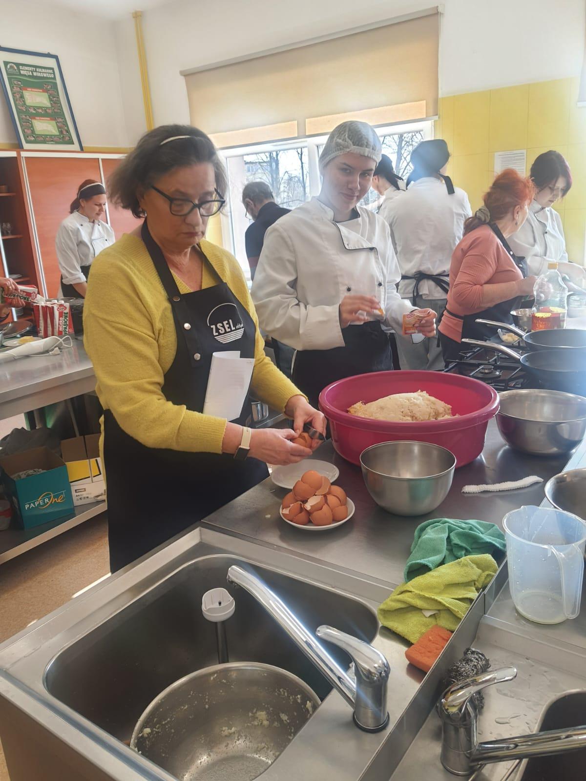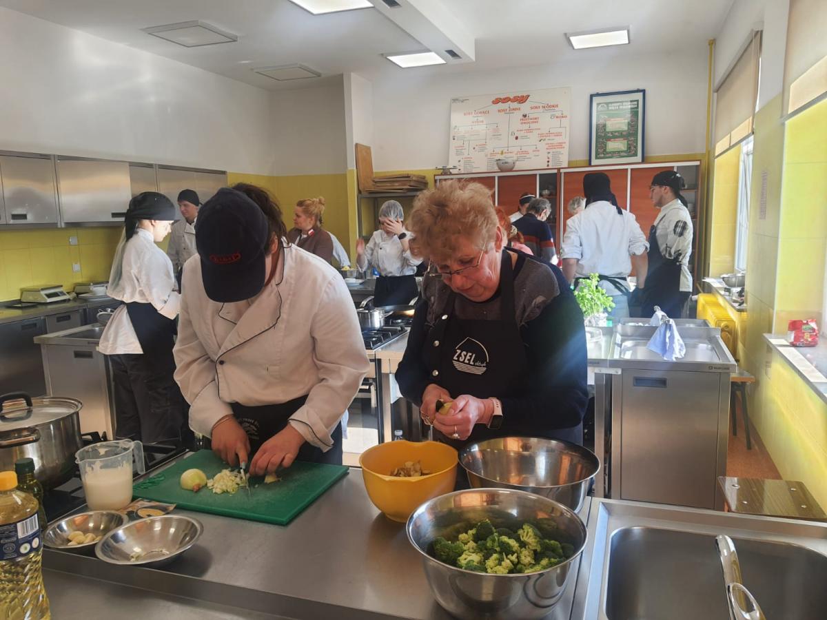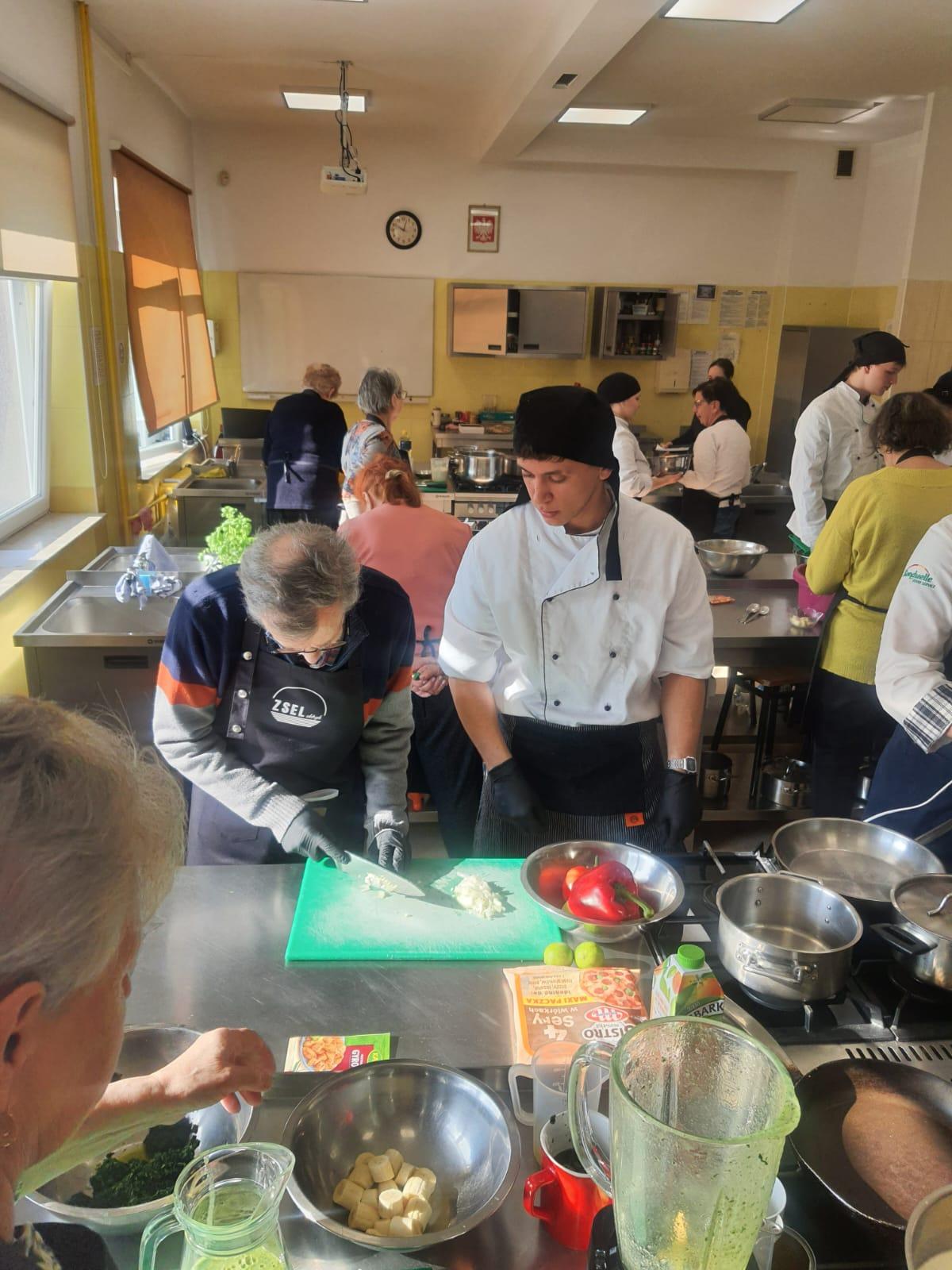 Wspólne gotowanie było nie tylko okazją do nauki zdrowych nawyków żywieniowych, ale także do rozmów, wymiany doświadczeń i budowania międzypokoleniowych relacji. Seniorzy chętnie dzielili się swoimi kulinarnymi wspomnieniami, a uczniowie wskazówkami. Wszyscy mogli rozwijać swoje umiejętności społeczne, komunikacyjne oraz zawodowe.