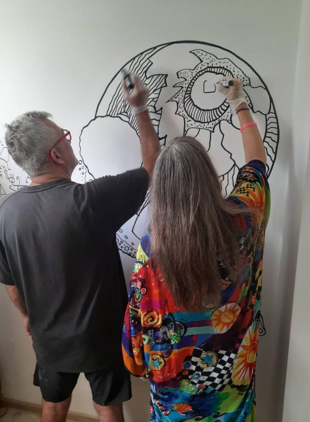 Autorką i autorem tych barwnych malowideł są Pani Joanna Cypriak vel Czupryniak oraz Pan Janek Janowski, którzy już po raz kolejny, całkowicie nieodpłatnie, przygotowali dla naszych podopiecznych tę niezwykłą ozdobę.
