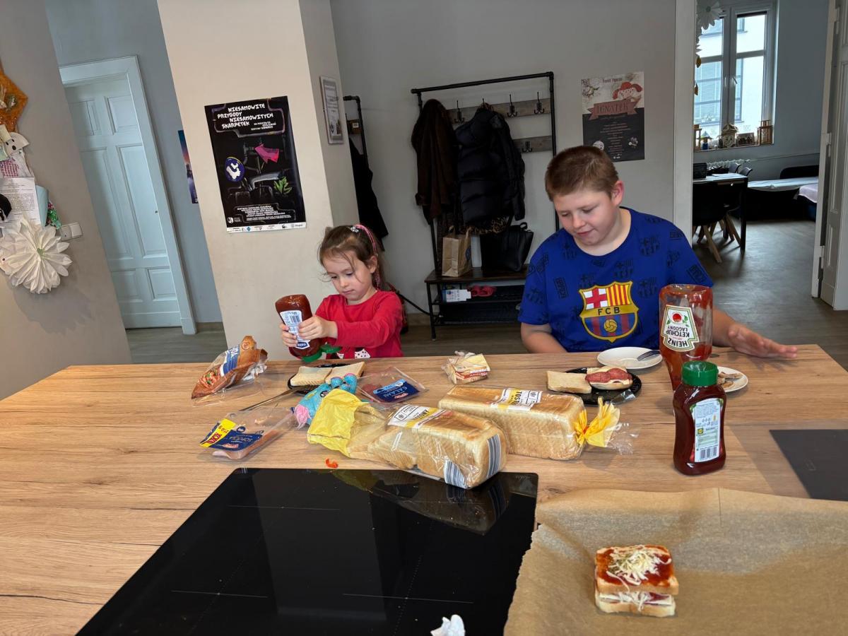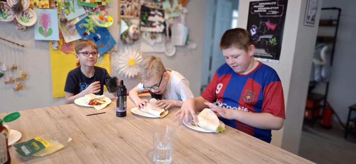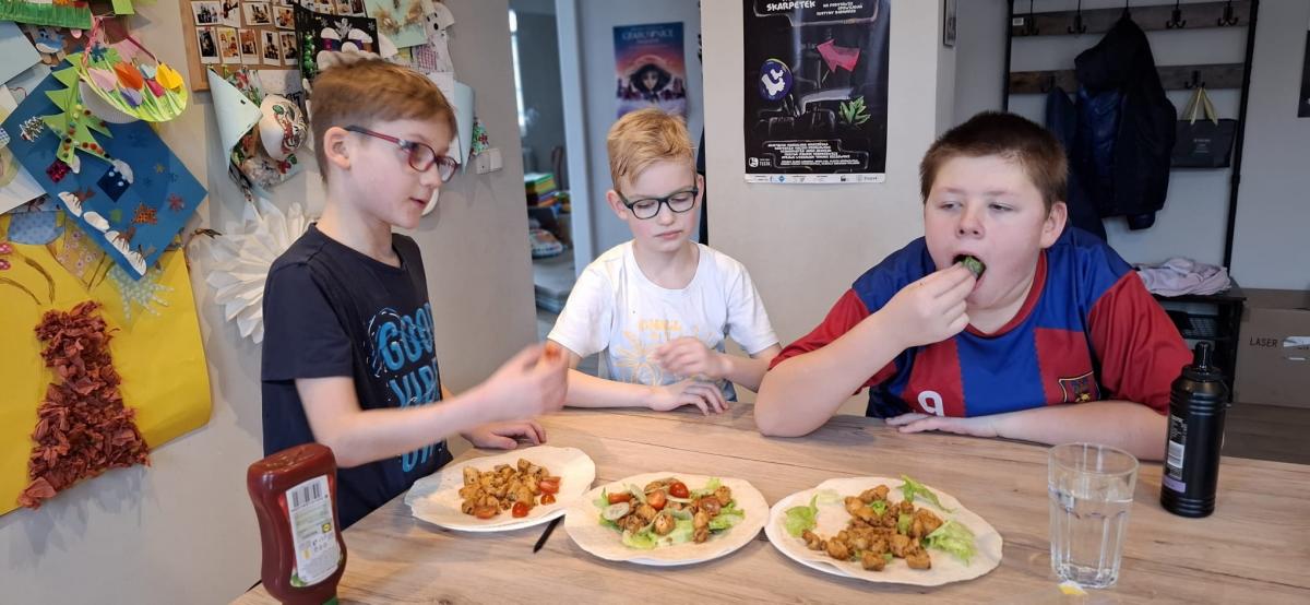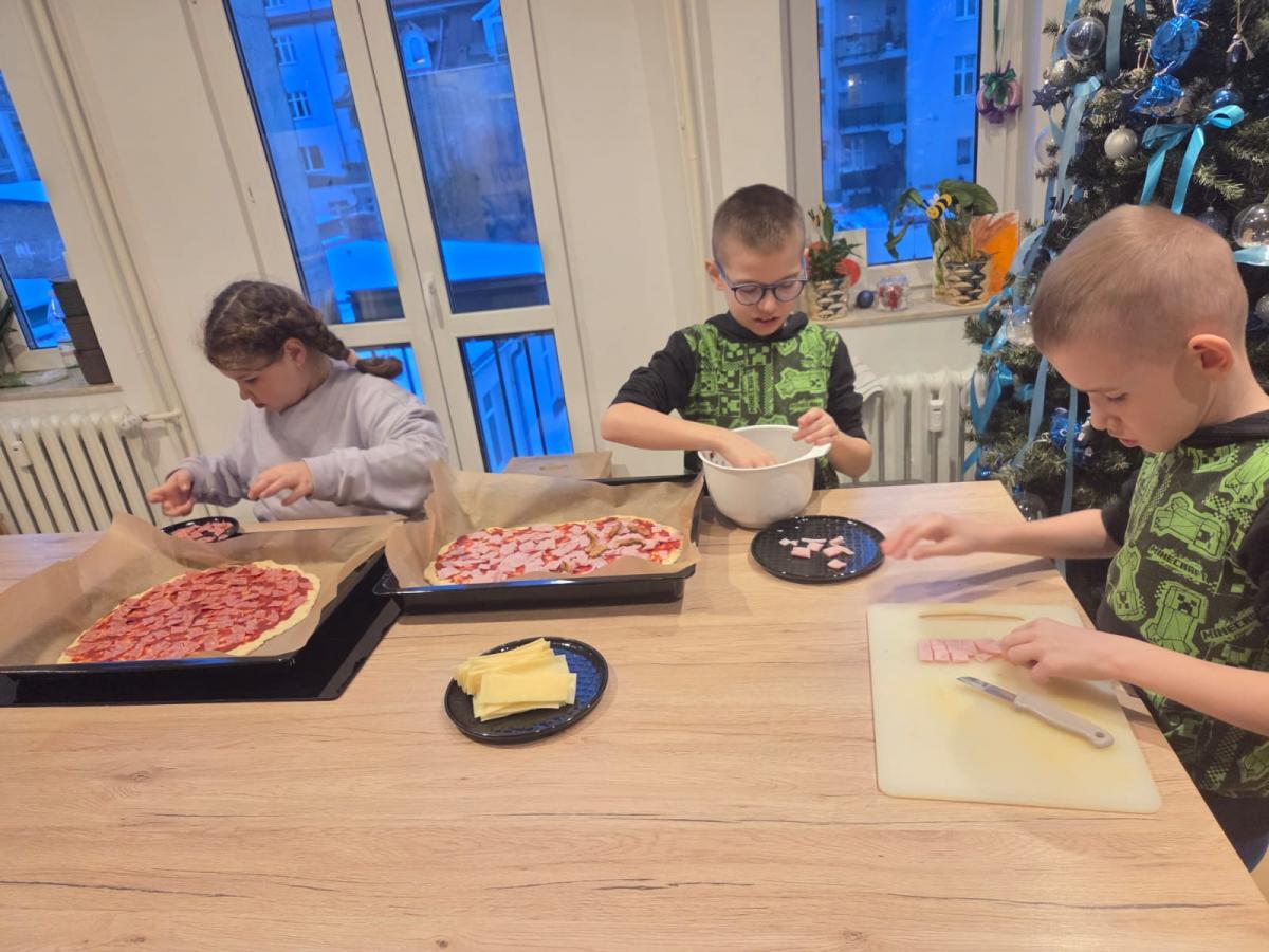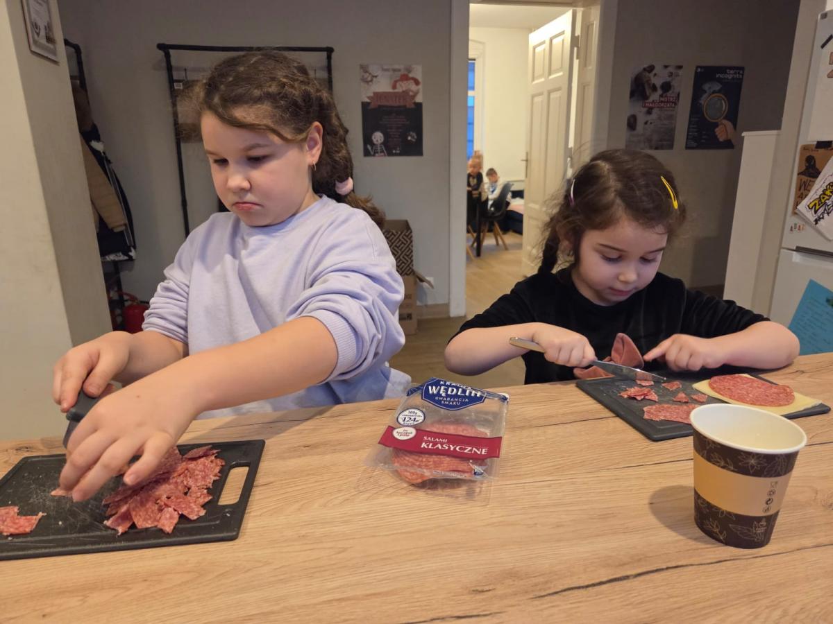 Podczas części kulinarnej uczestnicy mieli możliwość przygotowania różnych smacznych potraw. Wspólnie powstały m.in. domowa pizza, chrupiące tosty, pachnące rogaliki, lekka wiosenna sałatka oraz pita. Zajęcia kulinarne pozwalały nie tylko uczyć się prostych przepisów, ale także rozwijać umiejętności współpracy, planowania i organizacji pracy w kuchni.