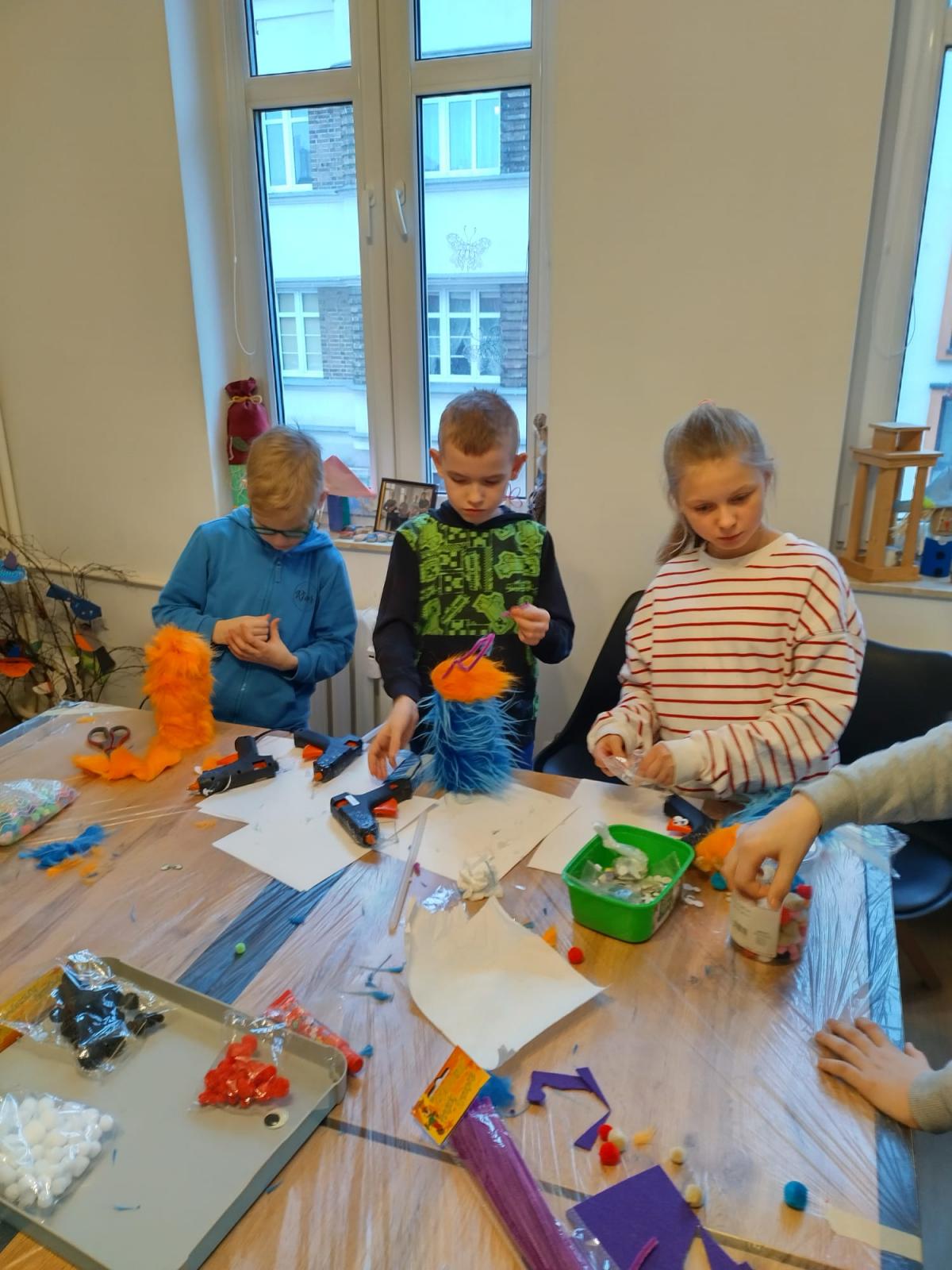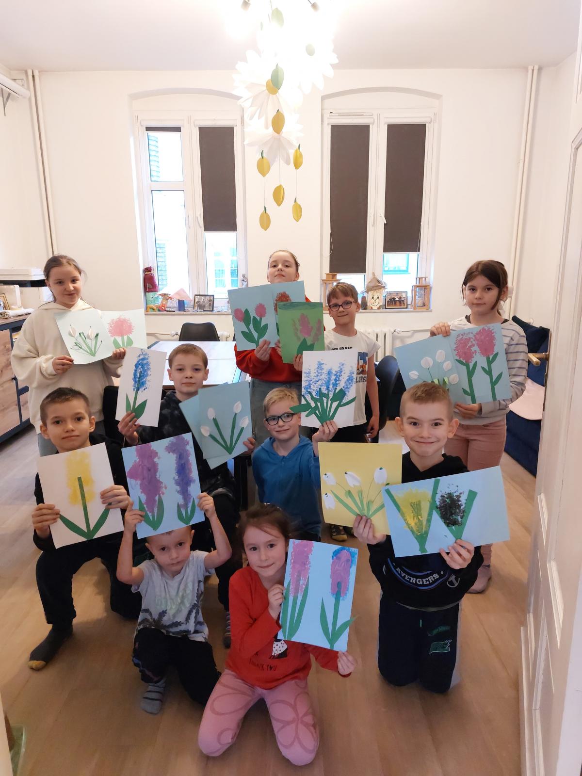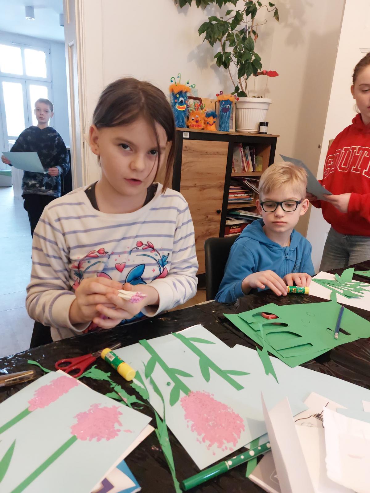 Nie zabrakło również działań plastycznych, podczas których powstały niezwykle pomysłowe prace. Uczestnicy tworzyli kolorowe kosmiczne ludki, przygotowywali wiosenne prace z motywami kwiatów, wykonywali walentynkowe ozdoby oraz brali udział w zajęciach związanych z tworzeniem i poznawaniem gier planszowych. Każde spotkanie było okazją do wyrażenia siebie poprzez sztukę i rozwijania wyobraźni.