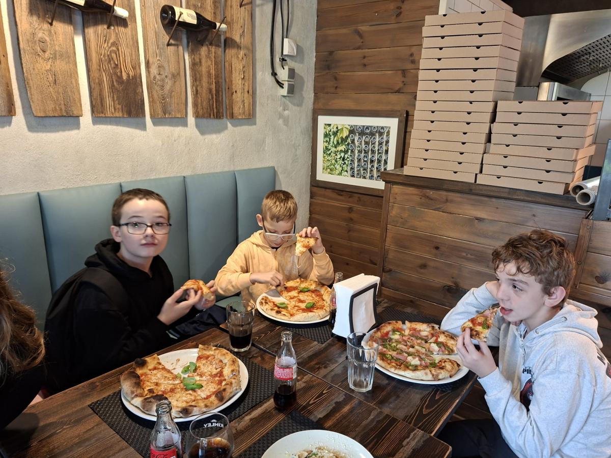Po kinie uczestnicy udali się do pizzerii Pizza Pazza, gdzie mieli możliwość samodzielnie podjąć decyzję, co chcą zjeść. Każde dziecko złożyło własne zamówienie u obsługi, ćwicząc przy tym kulturalne zachowanie w przestrzeni publicznej oraz cierpliwość w oczekiwaniu na posiłek. Dania smakowały wyjątkowo, a wspólny czas spędzony przy stole wzmocnił więzi w grupie.