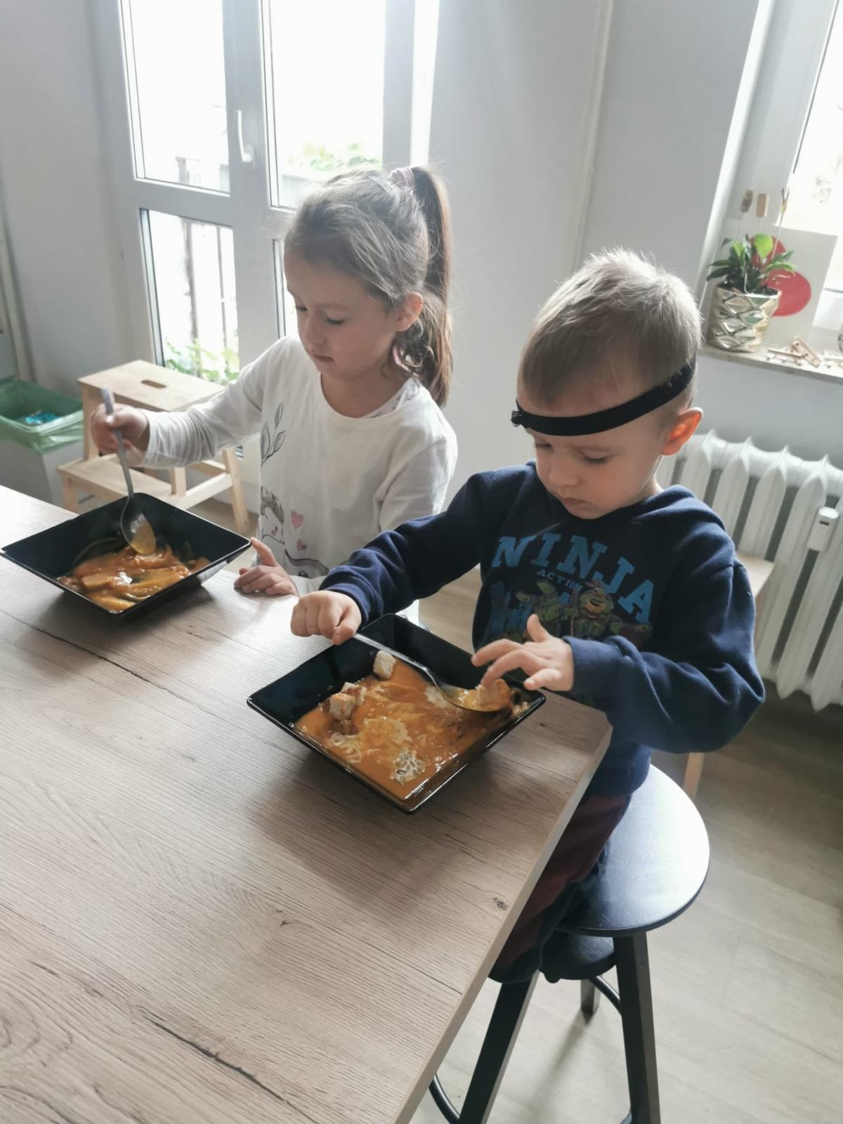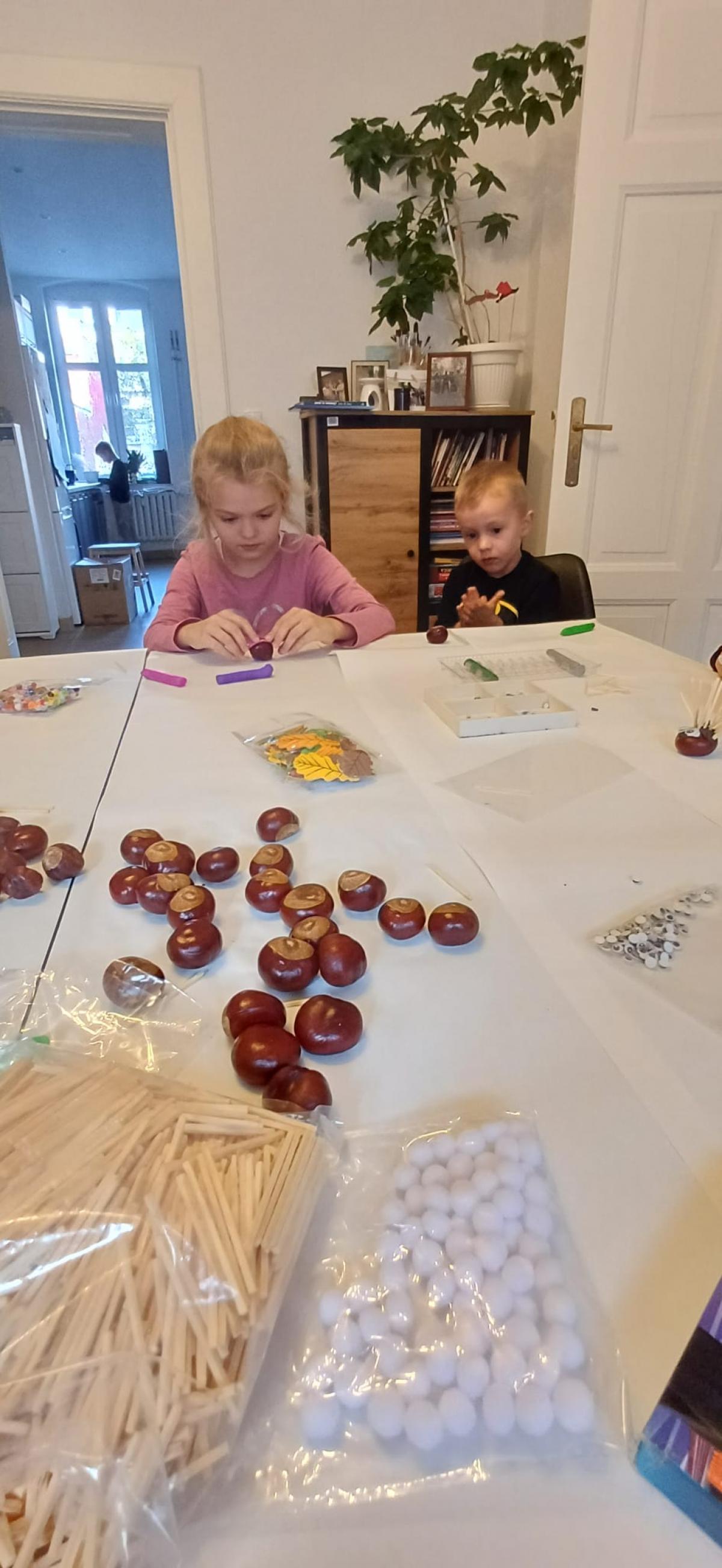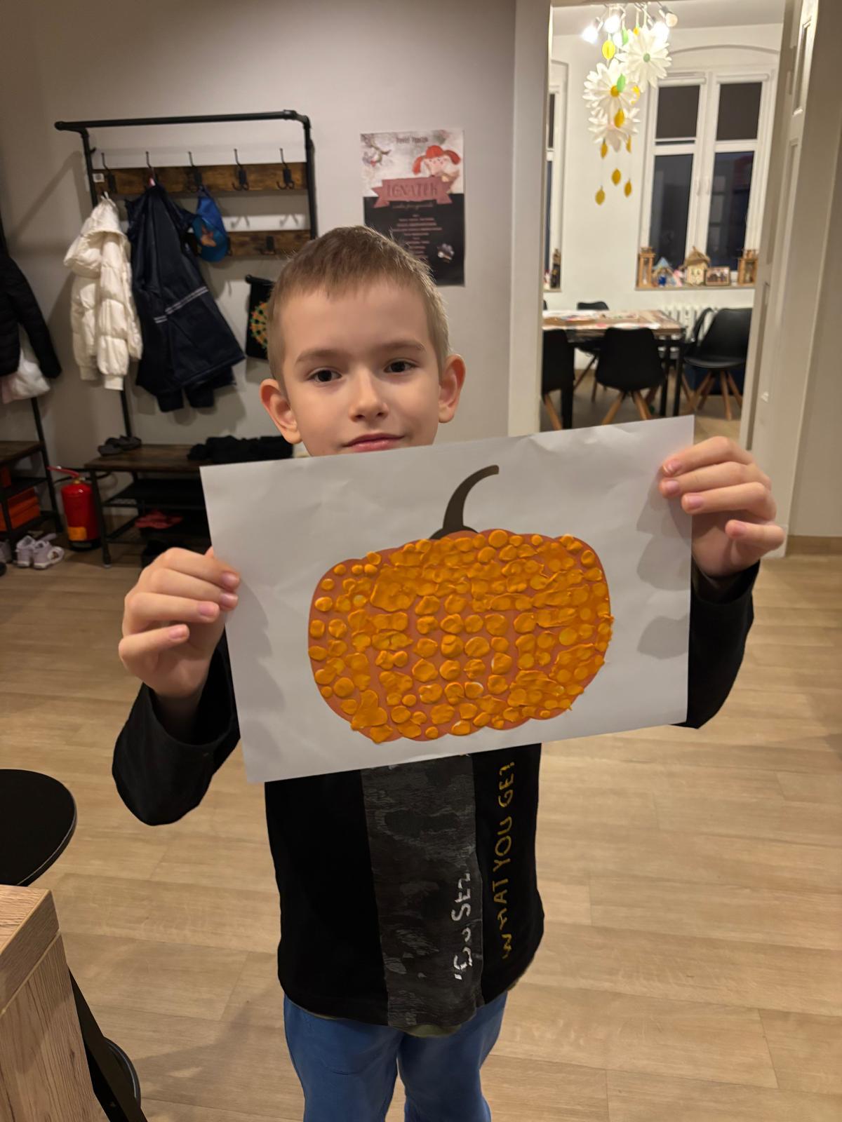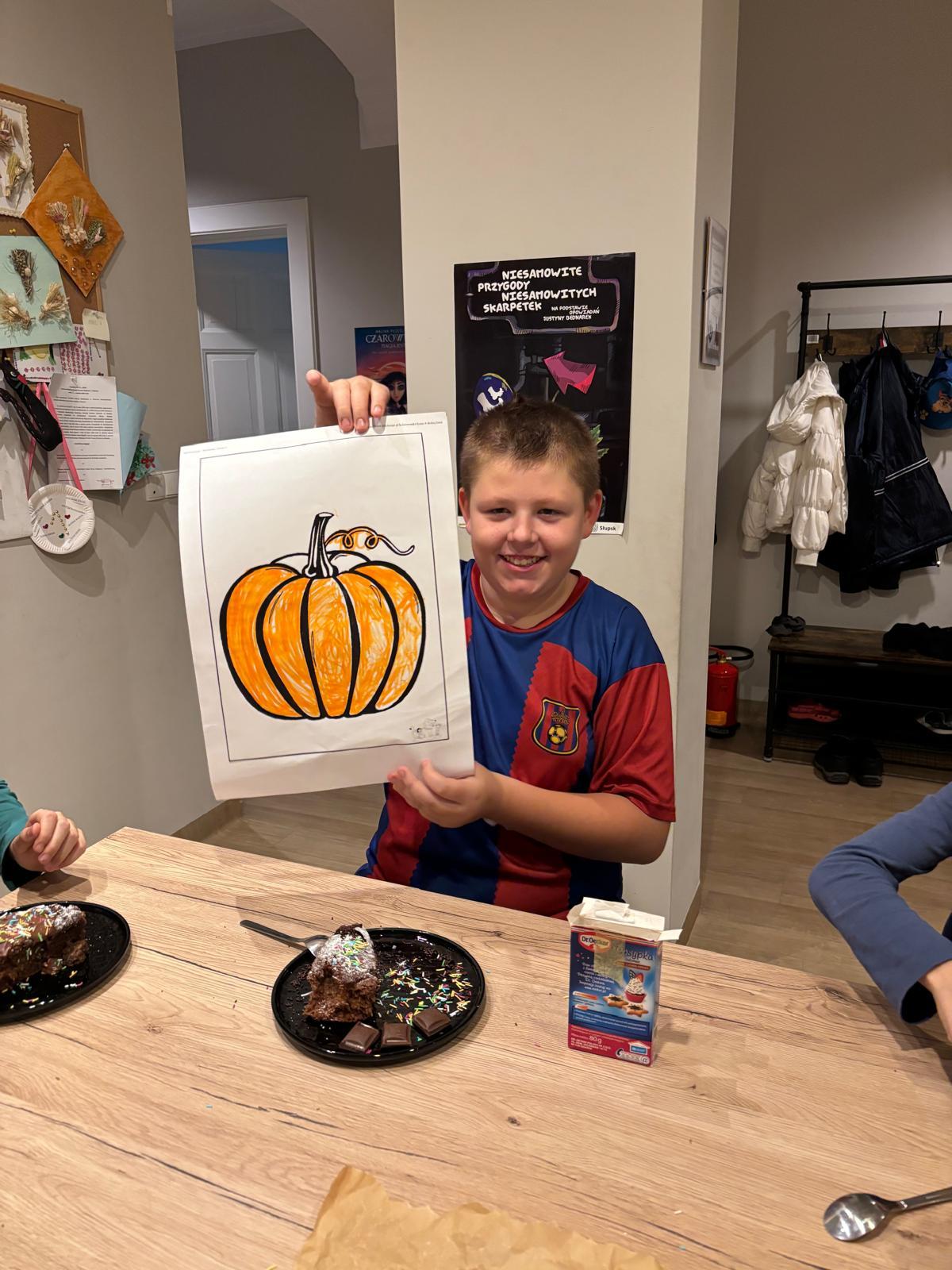 W październiku 2025 r. w Pracowni Samodzielności „Zakątek” zrealizowano cykl dziewięciu zajęć plastyczno-kulinarnych. Podczas spotkań dzieci wykonywały laurki, tworzyły obrazy z suchych liści, wykonywały prace plastyczne i kulinarne z dynią, przygotowywały figurki z kasztanów, piekły ciasta, przygotowywały hamburgery oraz uczestniczyły w warsztatach tematycznych związanych z Halloween.