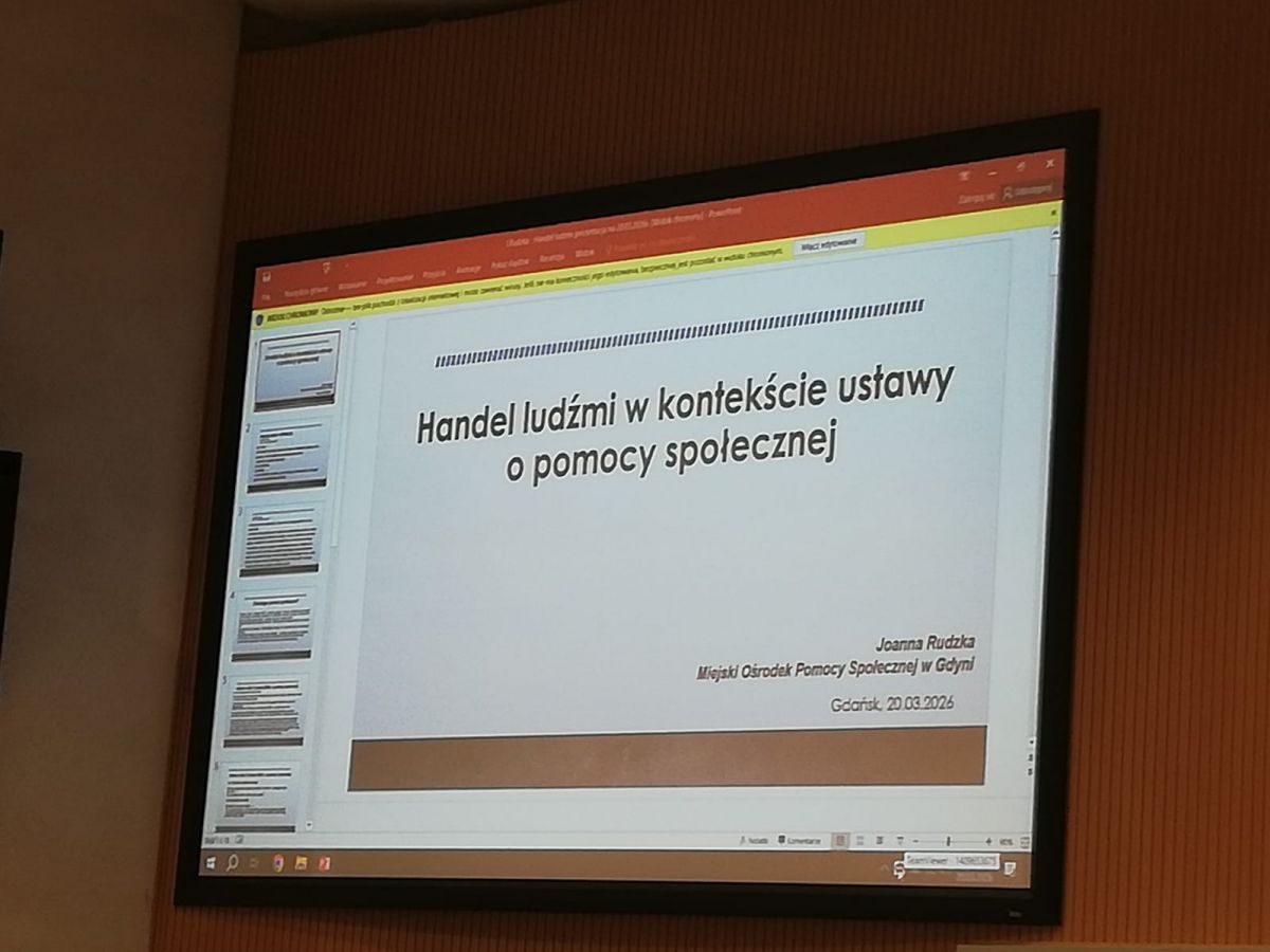 Przedstawiciele Miejskiego Ośrodka Pomocy Rodzinie uczestniczyli w konferencji pt. „Świadomość zagrożeń kluczem do bezpieczeństwa. Współpraca instytucjonalna na rzecz zapobiegania i zwalczania przestępstwa handlu ludźmi w województwie pomorskim”, która odbyła się 20 marca 2026 r. w sali im. Lecha Bądkowskiego Urzędu Marszałkowskiego.