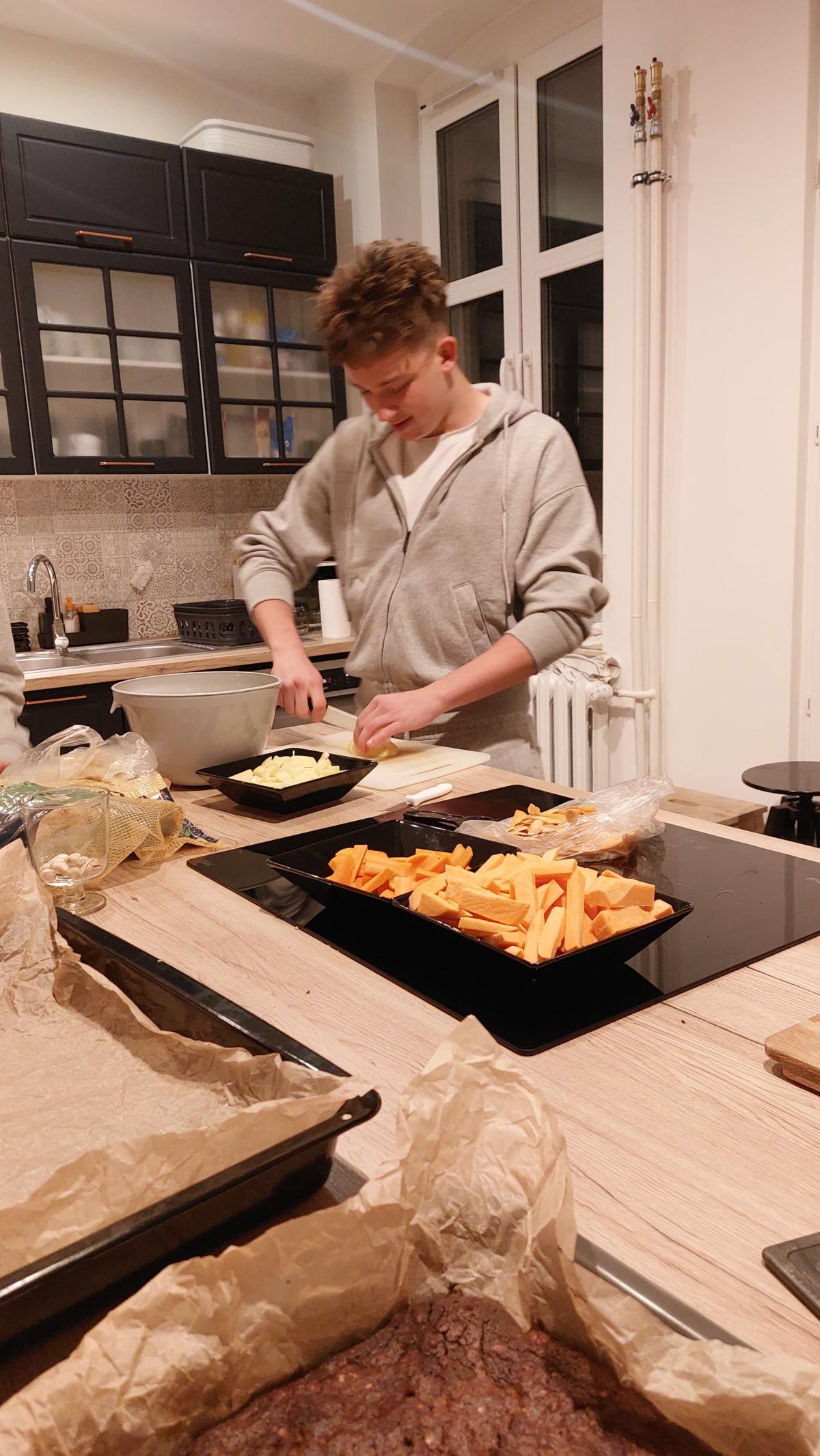 Podczas zajęć młodzież samodzielnie planowała budżet i zakupy, a następnie przygotowywała zdrowe, pożywne posiłki - śniadania i kolacje pełne warzyw i owoców. Ważnym elementem kulinarnych zmagań było także wspólne pieczenie domowego ciasta Brownie, które sprawiło uczestnikom wiele radości i dało okazję do współpracy.