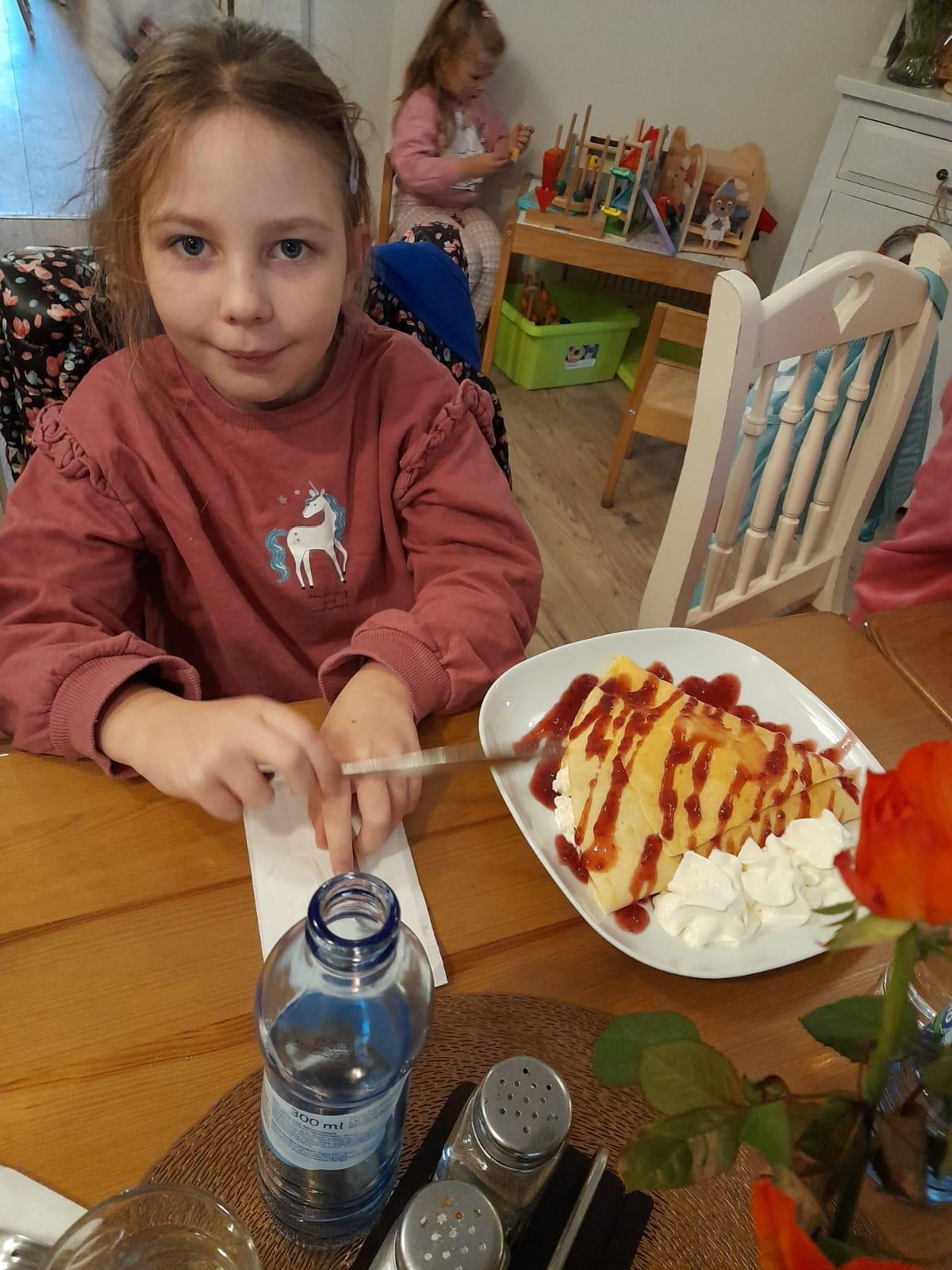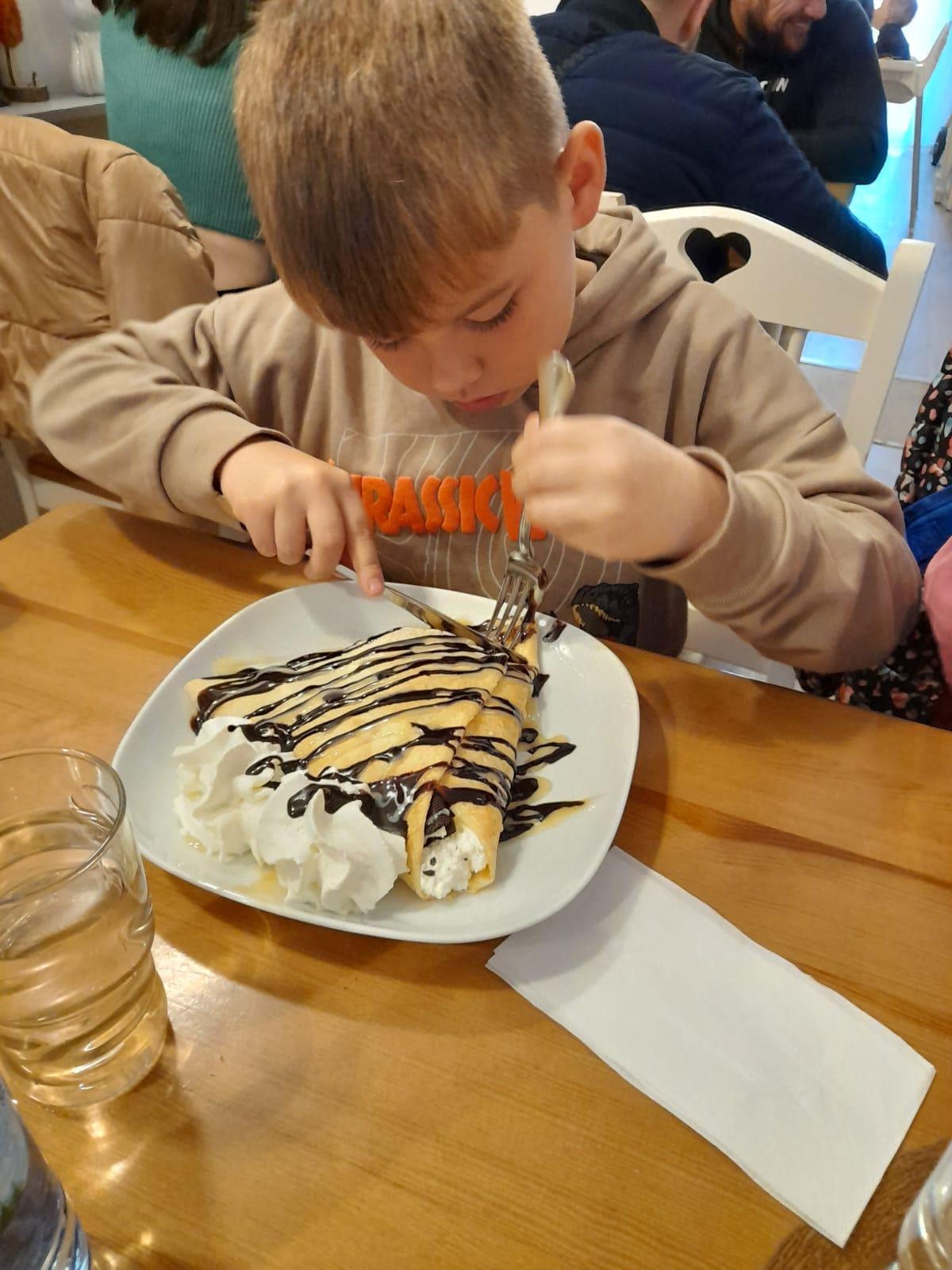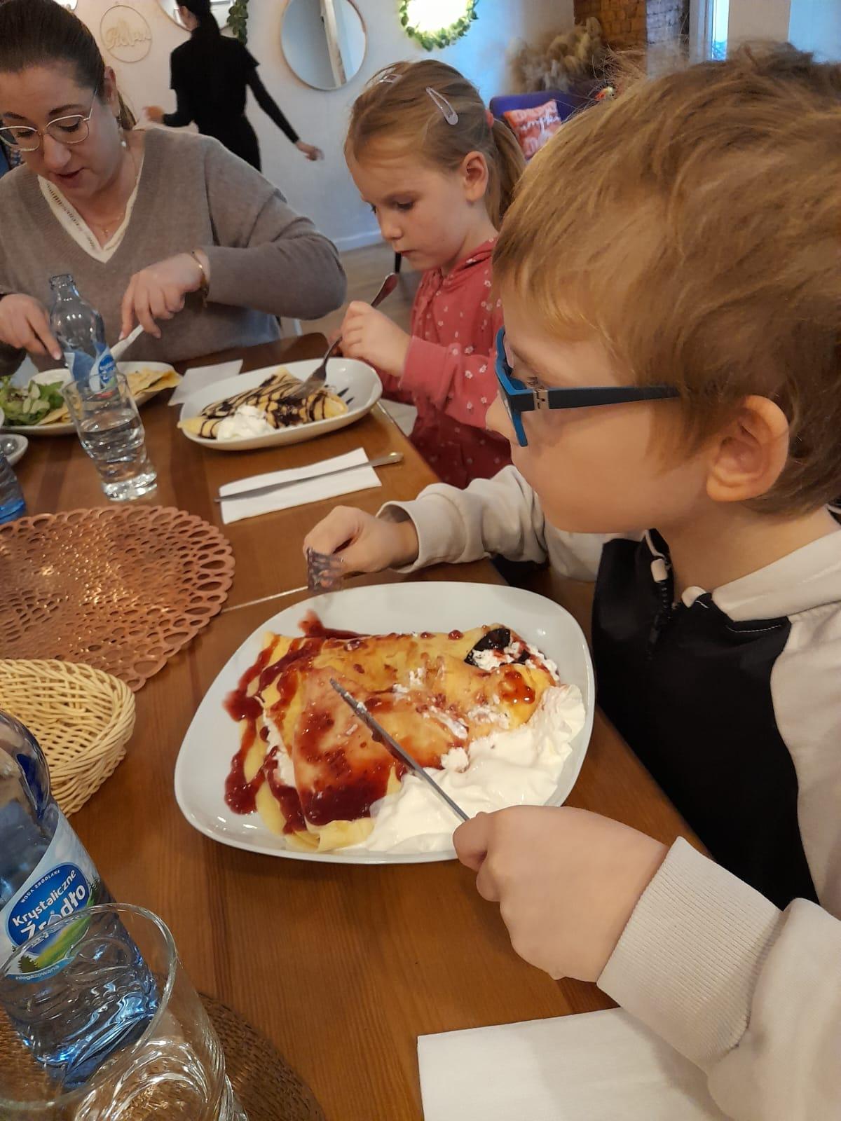 Po seansie grupa udała się do restauracji „Koty za płoty”, gdzie każdy uczestnik samodzielnie zdecydował, na co ma ochotę, złożył zamówienie u kelnerki, a następnie z apetytem zjadł wybrany przez siebie posiłek. Przy wspólnym stole nie zabrakło rozmów, żartów i zabawy w kąciku dla dzieci.