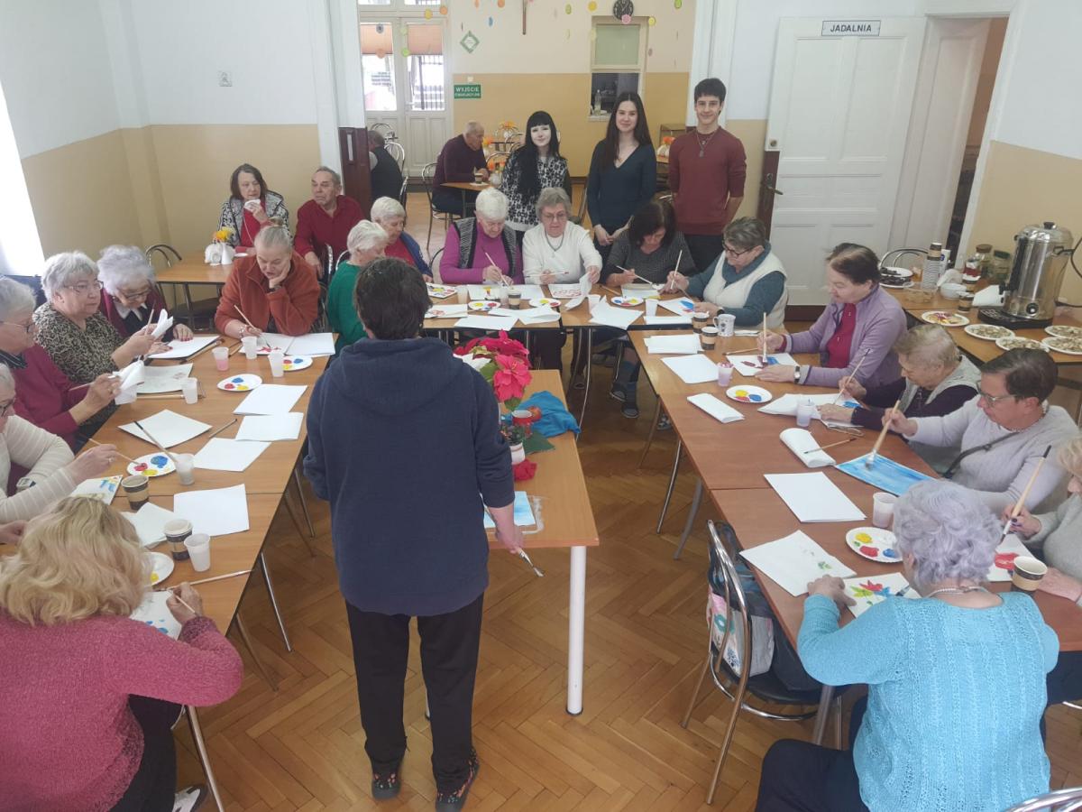 Dziś (18 luty 2026 r.) w Dziennym Domu Pomocy Społecznej „Bezpieczna Przystań” odbyło się spotkanie warsztatowe z udziałem młodzieży z klasy plastycznej Zespołu Szkół Informatycznych. Uczestnicy zajęć przygotowali dla podopiecznych naszej placówki warsztaty malarskie, podczas których wykonywano prace w formie „martwej natury”.
