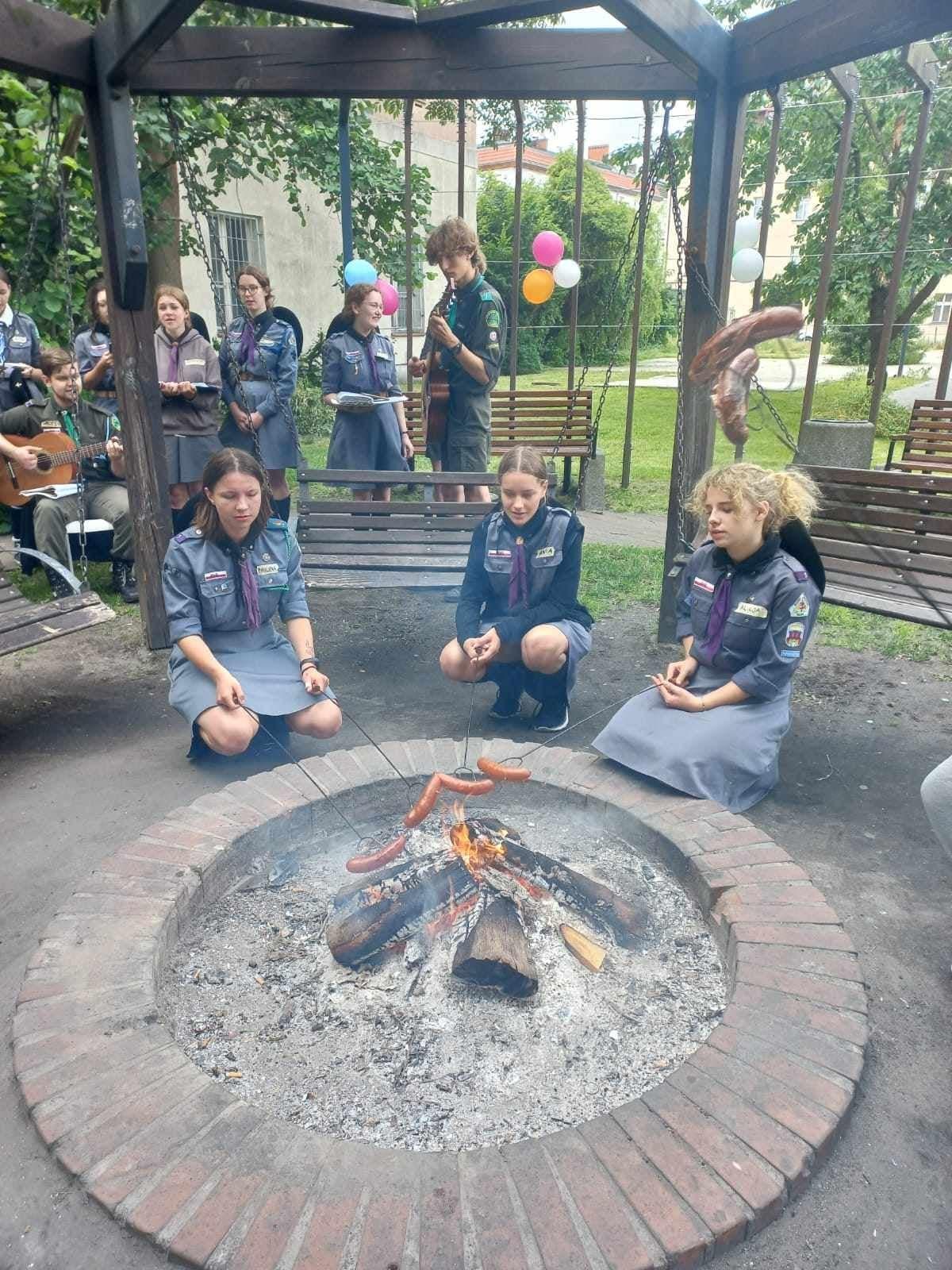 Młodzież, która w Słupsku zagości do soboty, a na Pomorzu do końca lipca, spotkała się z naszymi seniorami. W ogrodzie DDPS odbyła się wspólna biesiada – ognisko z kiełbaskami. Czas umilały gawędy harcerskie („Anioły Bieszczadzkie”, „Płonie ognisko”, „Hej Sokoły” czy „Stokrotka”) i znane piosenki czy pieśni („Mury”, „Obława”).